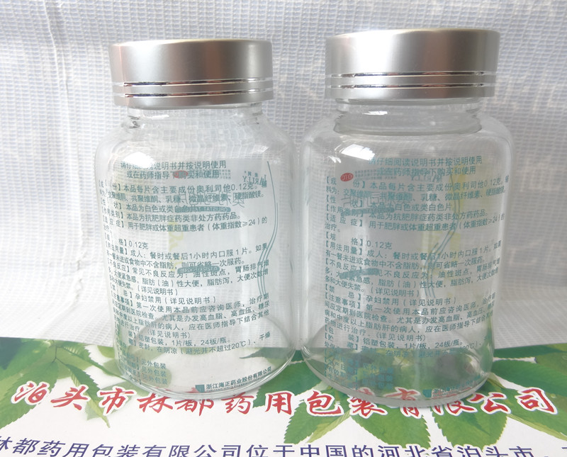 這是一款用于盛裝減肥膠囊的玻璃瓶,是北京碧生源在我公司訂購的,他們選擇這款玻璃瓶的原因是,這款玻璃瓶具有良好的通透性,品質好, 符合他們的產品形象,并可高溫滅菌,具有優良的化學穩定性,保證所盛裝的產品不會因為包裝材質的原因產生對人體有害的因素。