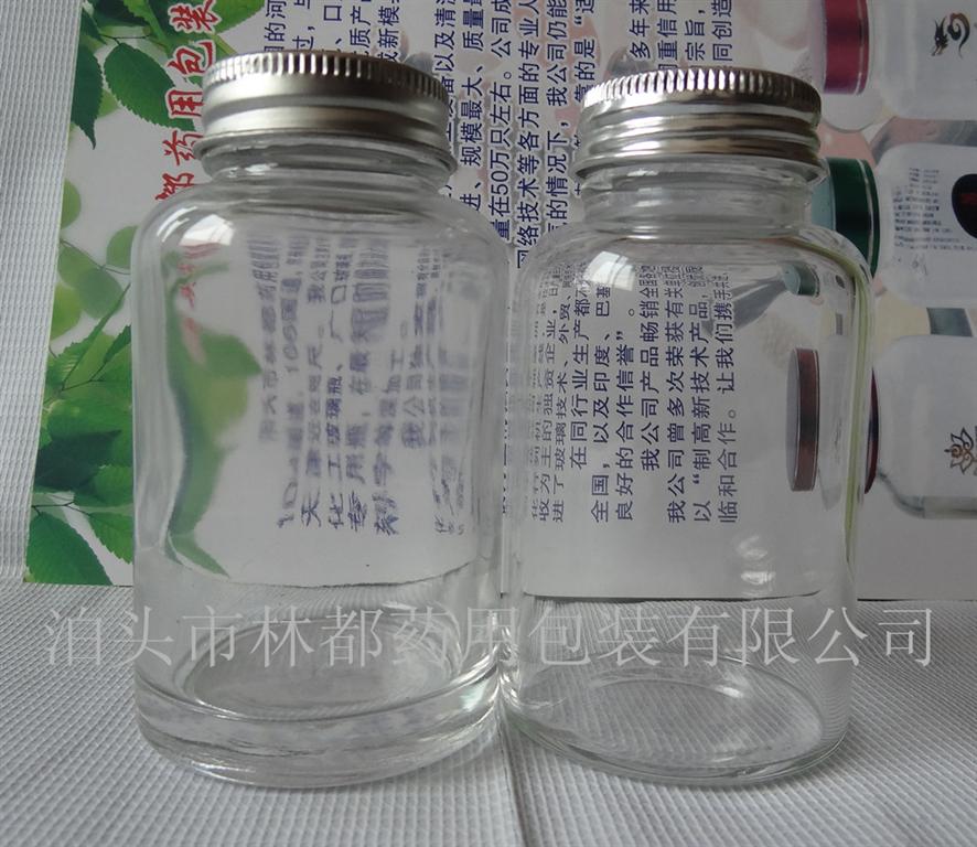 100ml廣口藥用玻璃瓶直徑為50ml,高度為88mm,瓶口外徑為38mm,顏色有棕色和透明,瓶口較大,主要是用于盛裝各種膠囊、片劑、粉劑,顆粒等,材質為鈉鈣玻璃, 其標準是執行國家食品藥品監督局的YBB00272002標準。