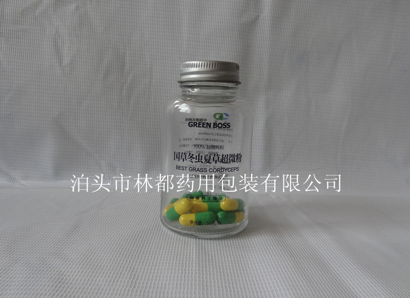 這款蟲草玻璃瓶瓶口為大口,可用于盛裝蟲草粉、蟲草膠囊、蟲草片等,可配鋁蓋、電化鋁蓋、自封墊片、鋁箔墊片。此款蟲草玻璃瓶的材質(zhì)為藥用鈉鈣玻璃,藥用鈉鈣玻璃具有防酸、防堿、防腐蝕、防滲漏等優(yōu)點(diǎn),其不但符合國家包裝法的規(guī)定,還能滿足蟲草所需的密封性能。而且我公司還可以根據(jù)客戶的需求,在瓶身上進(jìn)行印字、印標(biāo)、亮金等工藝,不擔(dān)能夠滿足客戶的需求,還能更加美觀的體現(xiàn)蟲草的特性。