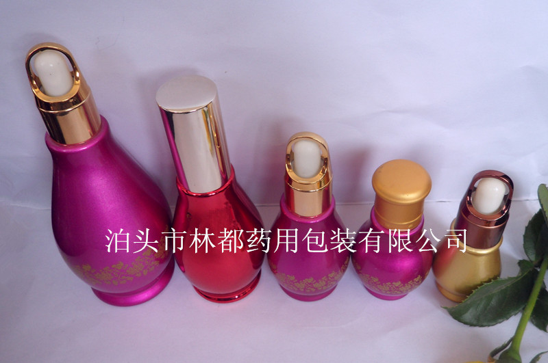我公司生產的玻璃瓶根據客戶要求進行電鍍或噴涂加工, 如下圖所示,這種電鍍噴涂的玻璃瓶更具有美觀性,配有不同類型的蓋子,可用于各種高檔的精油包裝。