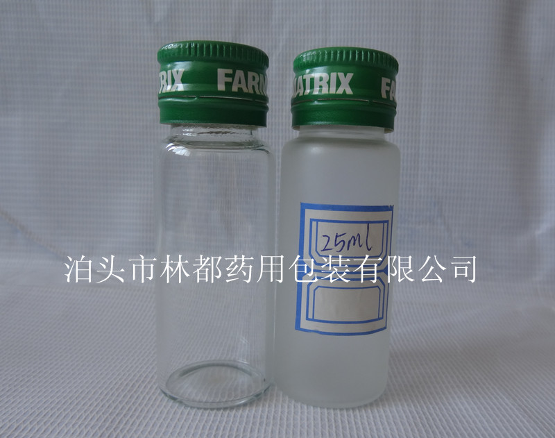 這款25ml防盜螺旋口口服液瓶有透明色或者蒙砂的,可配扭斷式防盜鋁蓋、丁基墊片、硅膠墊片等,材質為低硼硅玻璃,低硼硅玻璃適合高速生產使用,內表面耐水性優異,極高的化學穩定性,不與內容物發生物理化學反應,耐熱性、耐冷凍性能卓越,棕色瓶具有優異的避光性能。制作方式為管制,管制口服液瓶有棕色和透明兩種,瓶口分為:卡口、C型口、防盜螺旋口三種。管制口服液瓶也適合盛裝保健品、糖漿等。