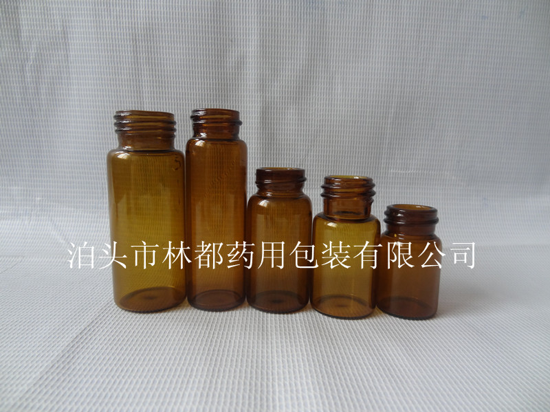 圖中螺口棕色玻璃瓶采用管制生產方式,可根據客戶要求訂做1ml到60ml不等容量,管制所生產的玻璃瓶容量較小,強度高,化學性能穩定,瓶壁薄均勻,利于傳熱。瓶口在燒制過程中,規格均勻,利于半壓塞,瓶底壁薄平整,利于傳熱產品收率高。螺口棕色玻璃瓶可做出不同尺寸的瓶口,并根據客戶所需要包裝產品制訂瓶口的尺寸,如盛裝液體,可把瓶口做小;盛裝粉沫,可把瓶口做大些,有利于產品的盛裝和使用;盛裝片劑,可以把瓶口做成和直徑尺寸一樣,直上直下瓶型。