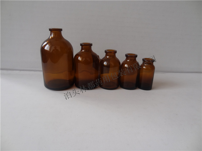 棕色注射劑瓶瓶口為卡口, 可配鋁蓋、鋁塑組合蓋、丁基膠塞、硅膠塞等。此款注射劑瓶有棕色,透明等種類,瓶頸部較細,瓶頸一下粗細一致.瓶口略粗于瓶頸,略細于瓶身.一般用做藥用注射液瓶,口服液瓶等。材質為鈉鈣玻璃,其是經1550~1600℃高溫熔融、成型、并經快速冷卻而制得的無定形非結晶固體材料,并且具有耐熱,耐壓,耐清洗的優點,既可高溫殺菌,也可低溫貯藏,正是由于其具有諸多優點,才能給更適合用于盛裝一些藥品粉劑,此款注射劑瓶制作方式為模制。